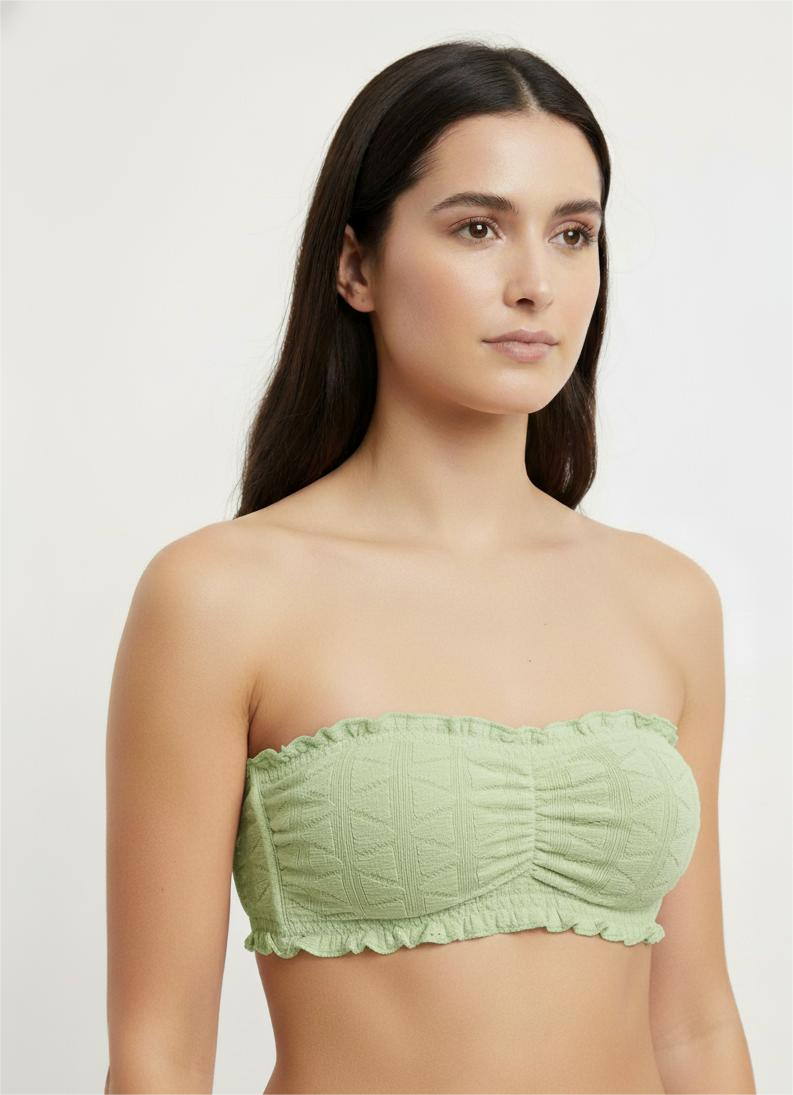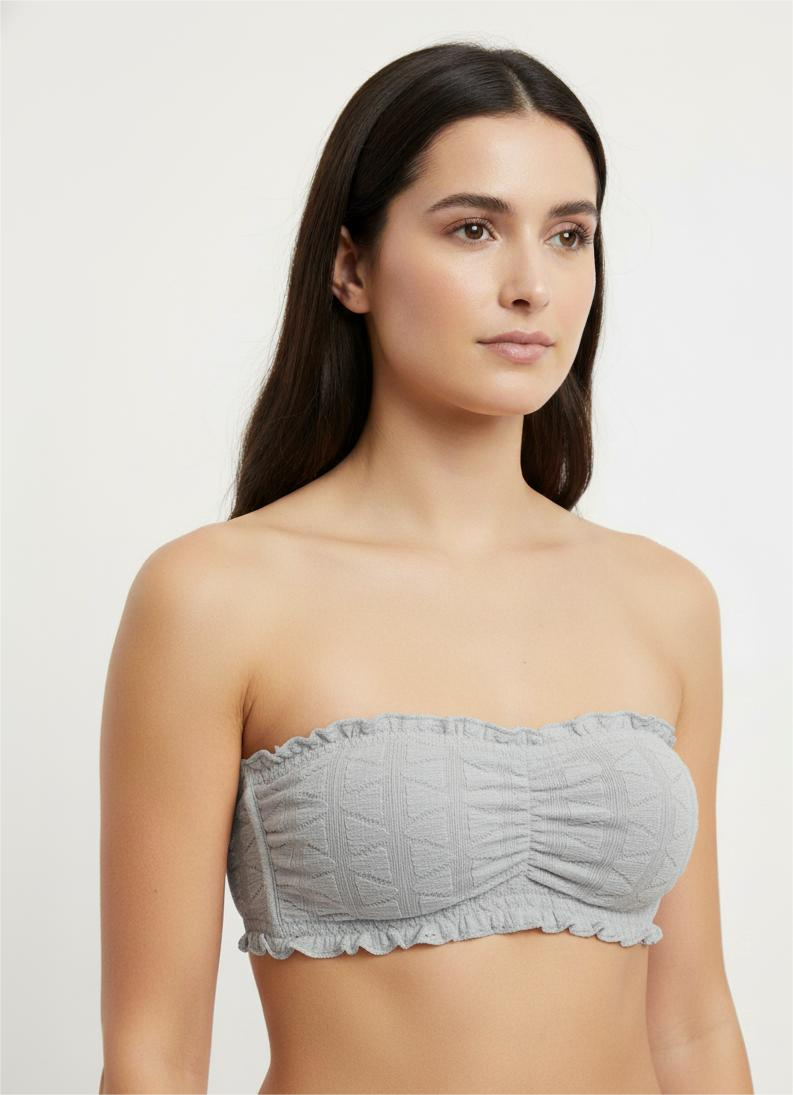 Ruched Knit Ruffle Bandeau Bralette – Cool Grey