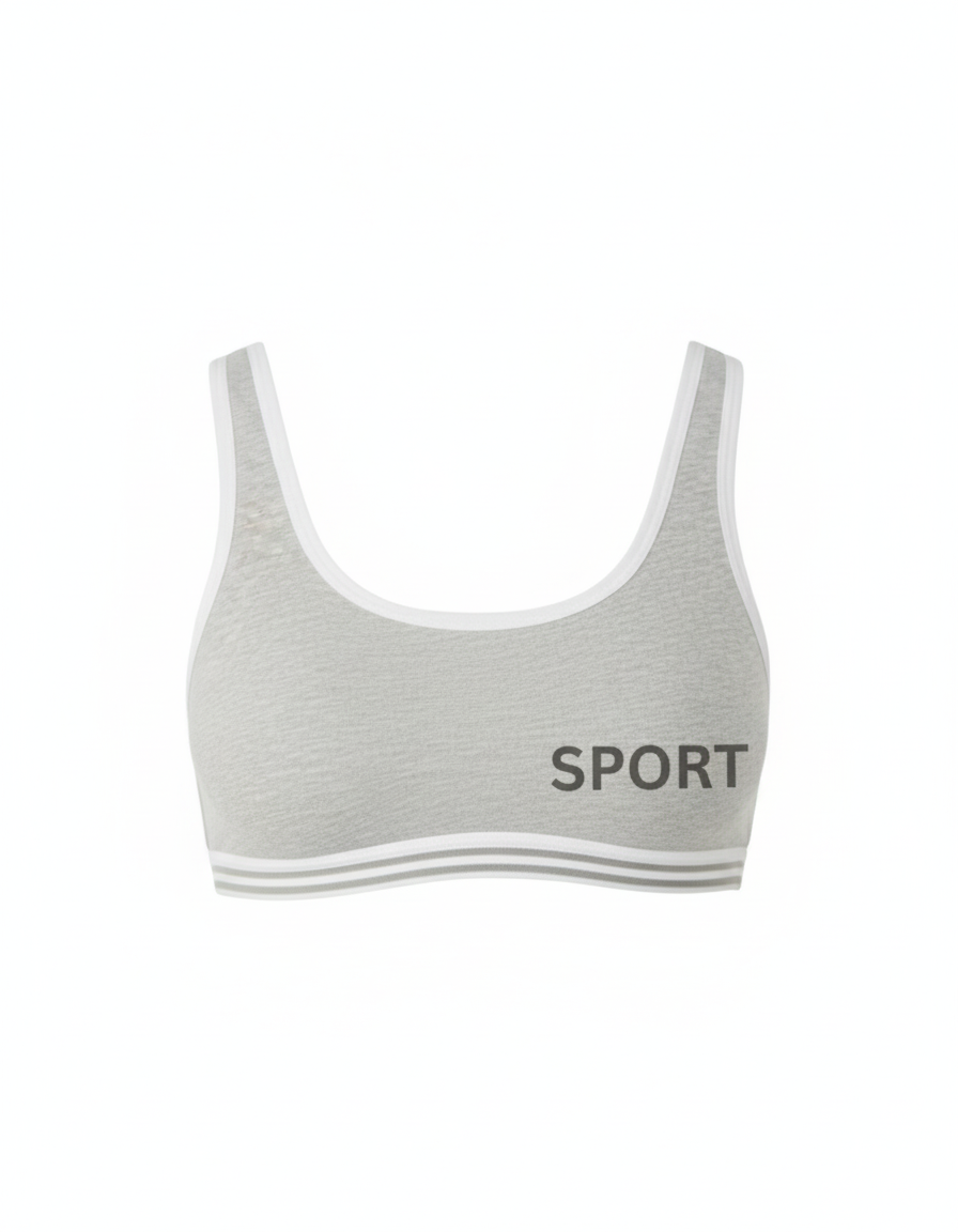 Move freely and comfortably in the Sport Stripe Performance Bra. This essential sports bra is designed for light to medium support, making it perfect for gym sessions, yoga, and everyday activities. It features a sleek, seamless design, wide supportive straps, and a signature striped elastic band for a secure, comfortable fit. The subtle ‘SPORT’ graphic adds a clean, athletic touch.